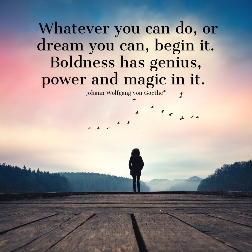 Boldness Has Genius Power And Magic In It Full Quote – Manifestation quotes are inspirational and help you achieve your goals. Here, find quotes for manifesting dreams and the best ones to add to a vision board. . He quoted Gothe: “Whatever you can do or dream you can, begin it. Boldness has genius power and magic in it. Begin it now.” His advice to solution providers looking to be successful in the .